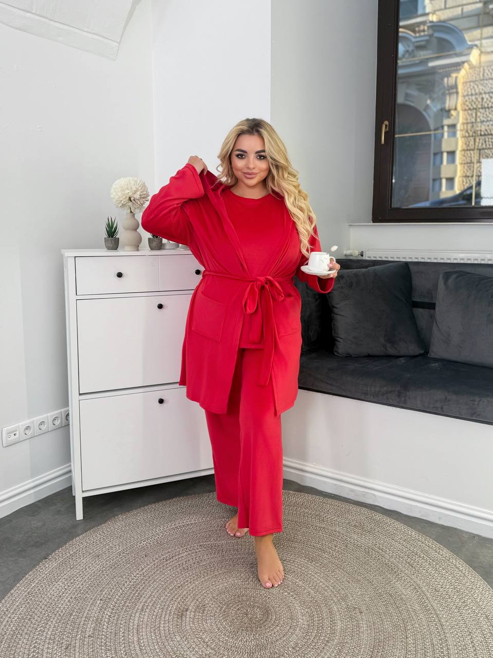 Піжама-трійка з велюру — м’який і затишний комплект для максимального комфорту. Велюр приємний до тіла, ніжний на дотик і виглядає стильно та охайно.
