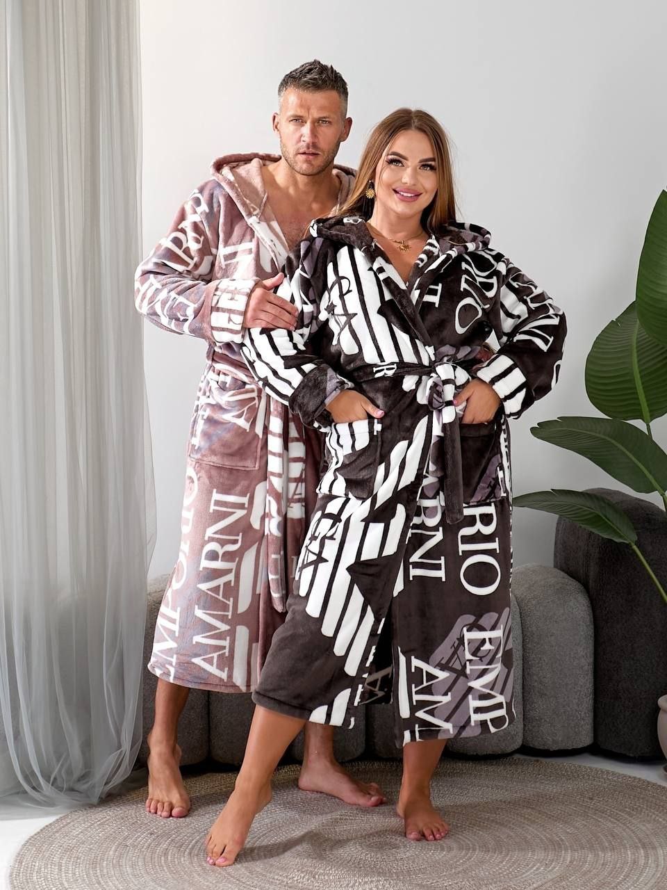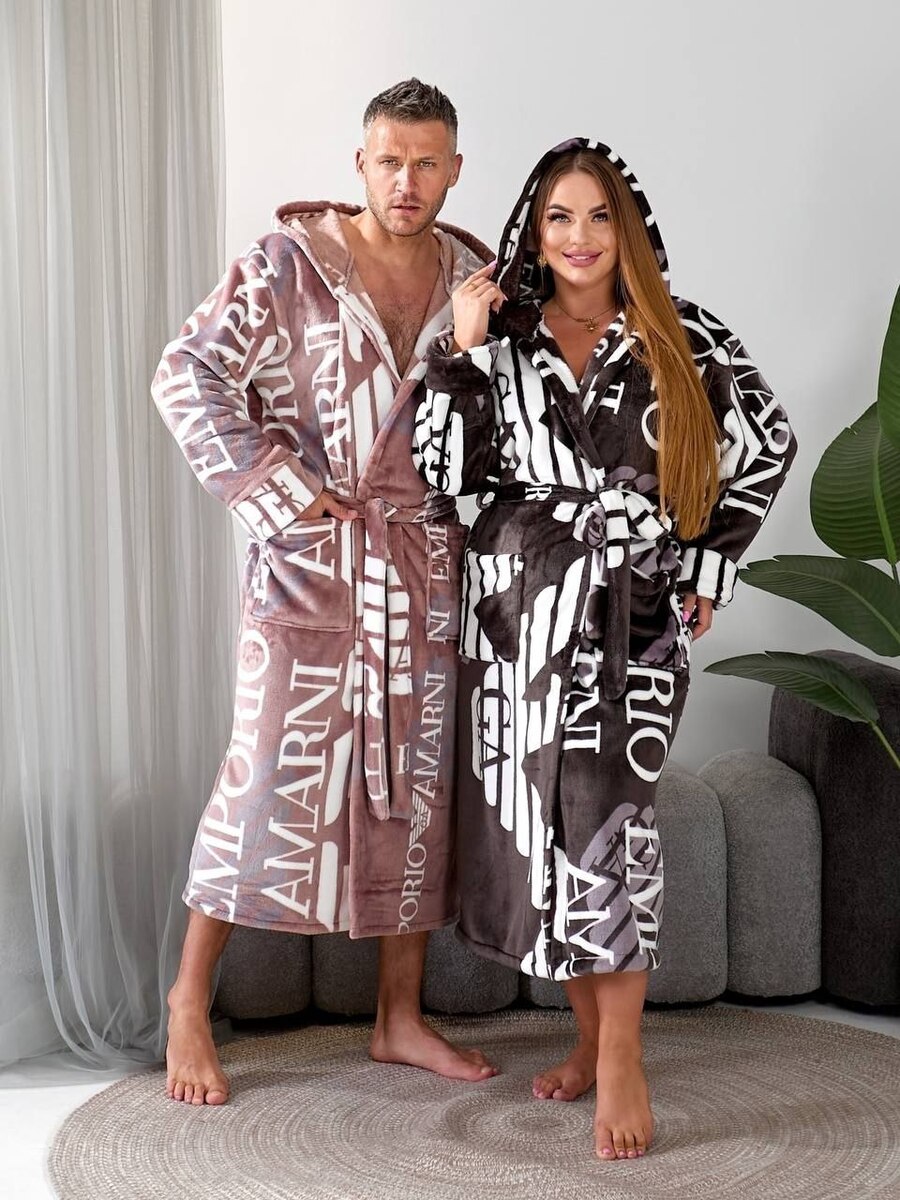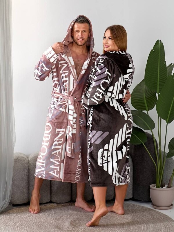 Халат з капюшоном має пояс і зручні кишені.