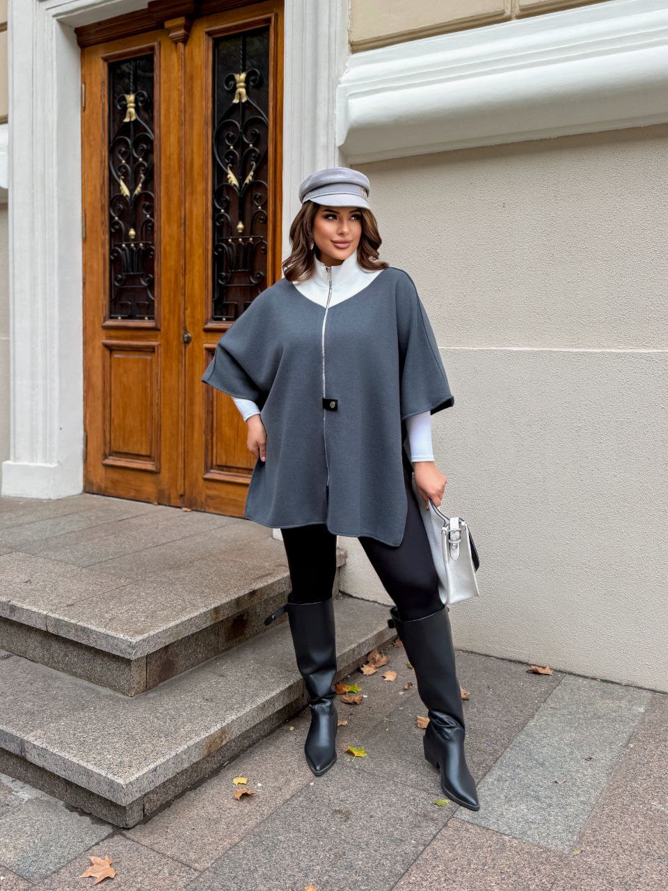 Подовжений, універсальний кардиган-пончо виготовлений з щільної ангори в'язки, тепла та м'ягенька тканина,приємна до тіла, не колеться. Вільний крій приховує недоліки та підійде для будь-якої фігури. Рукав 3/4, зручна робоча блискавка.