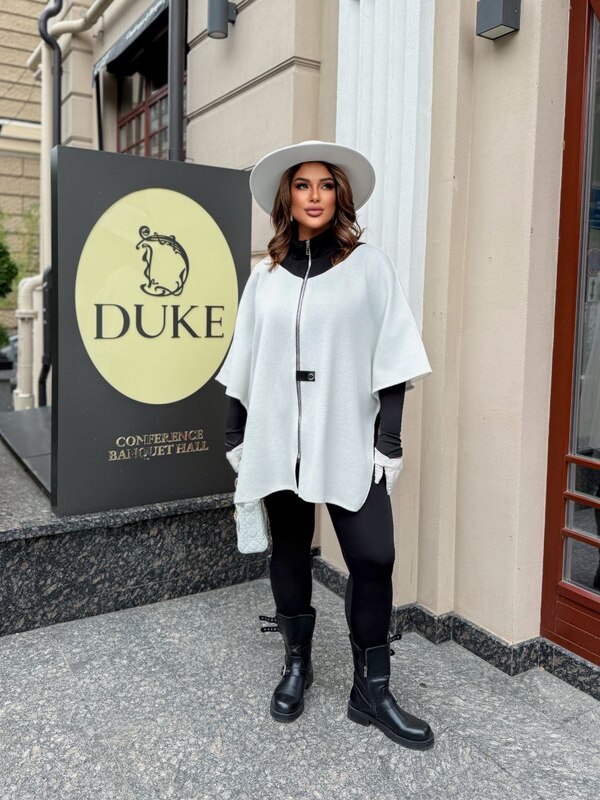 Подовжений, універсальний кардиган-пончо виготовлений з щільної ангори в'язки, тепла та м'ягенька тканина,приємна до тіла, не колеться. Вільний крій приховує недоліки та підійде для будь-якої фігури. Рукав 3/4, зручна робоча блискавка.