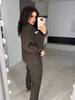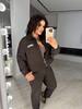 Кофтина зі спущеними рукавами, застібаеться на блискавку, низ регулюється кулискою. Як завжди зручні кишені та привабливий комірець.Брюки універсальні, трохи завужені до низу, мають дві кишені, єластичний пояс теж регулюються кулискою. І як завжди з гарною посадкою. Пасує до будь якої сітуації, окрім того дуже комфортний.