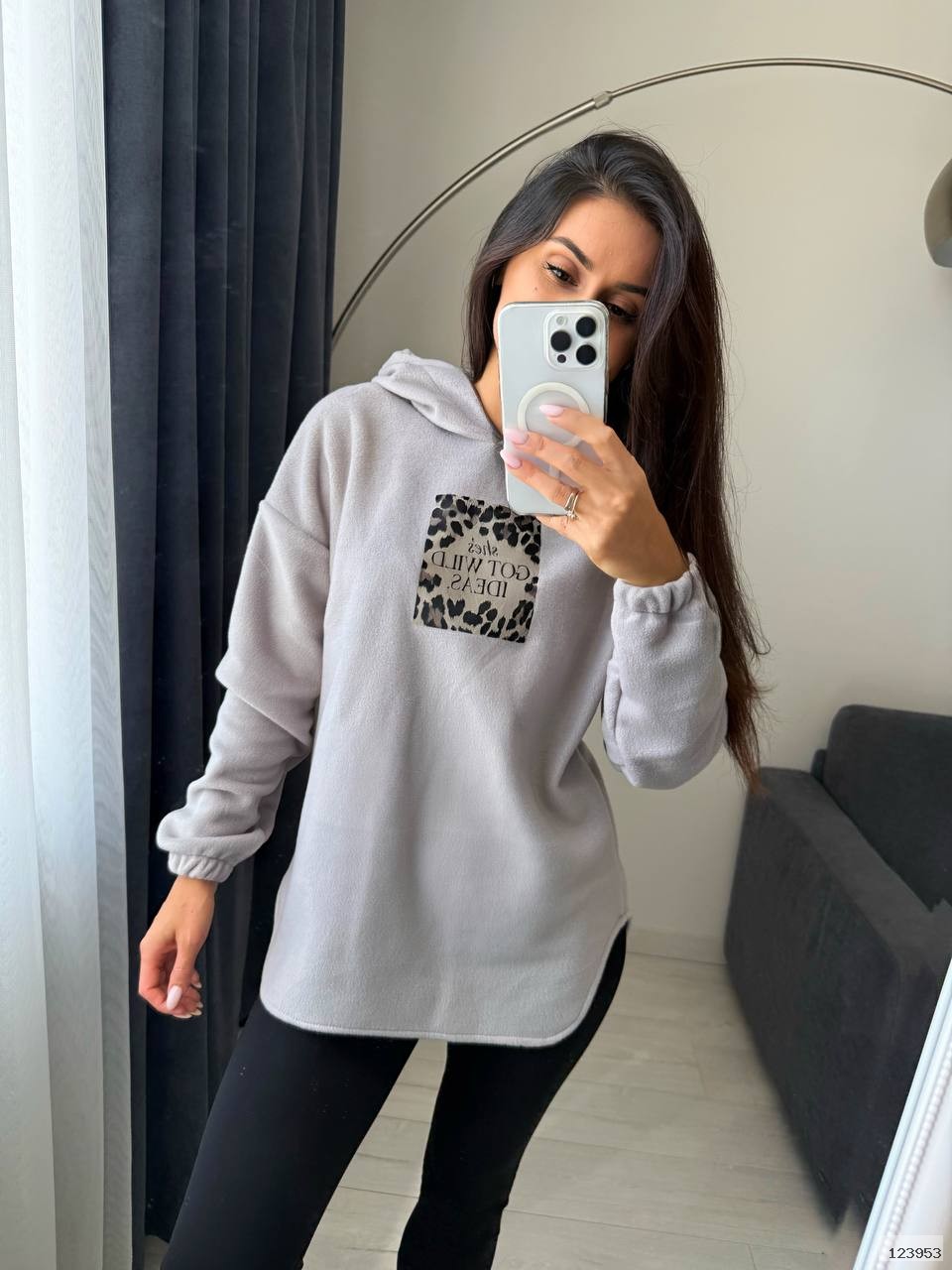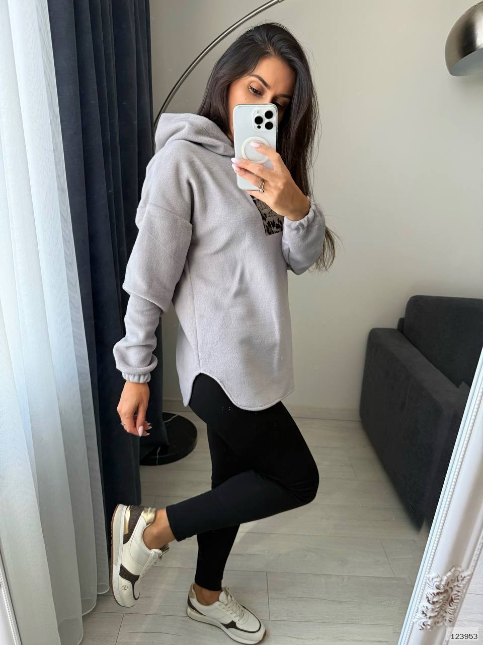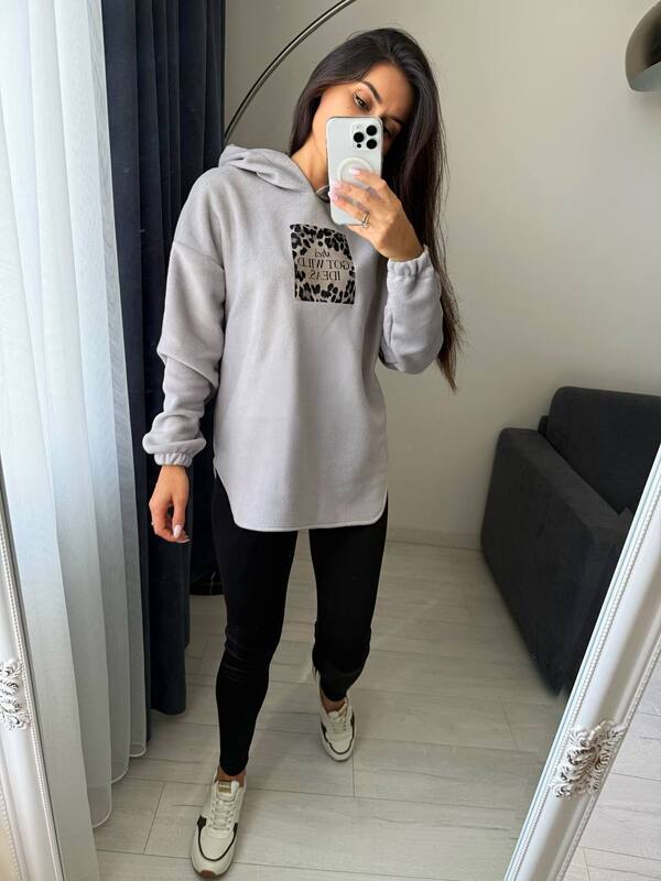 Стильний, зручний та дуже м’який комплект для осені та зими. Складається з подовженої кофти з капюшоном і лосінів. Комфортний у повсякденному носінні, підходить як для дому, так і для прогулянок.