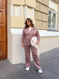 Стильний, зручний, практичний костюм з якісної тканини -це саме те , що потрібно на прийдешню прохолоду.Кофта на застібках і з капюшоном виглядає дуже стильно і додає зручності.