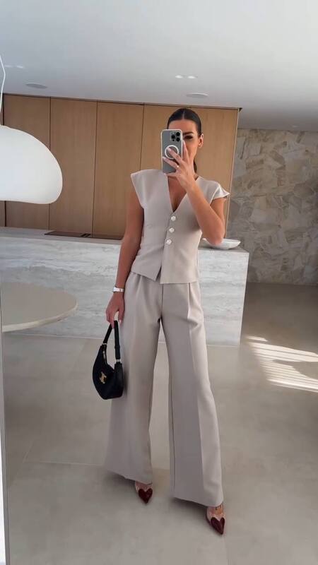 Жилетка застібається на ґудзики. В брюках є кишені , в талії в поясі по спинці є резинка, і шлейки під ремінь , застібаються на ґудзики, блискавку .