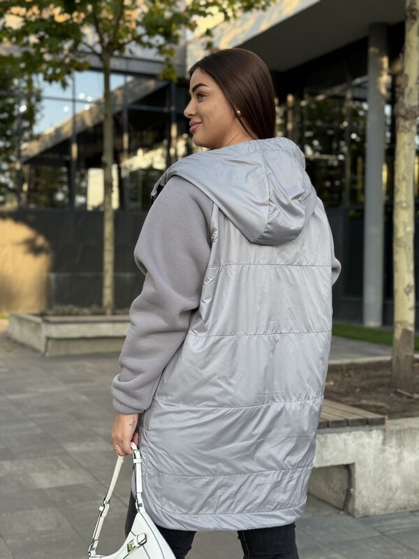 Стильній та комфортний подовжений кардиган прямого крою, з капюшоном та двосторонюю блискавкою.