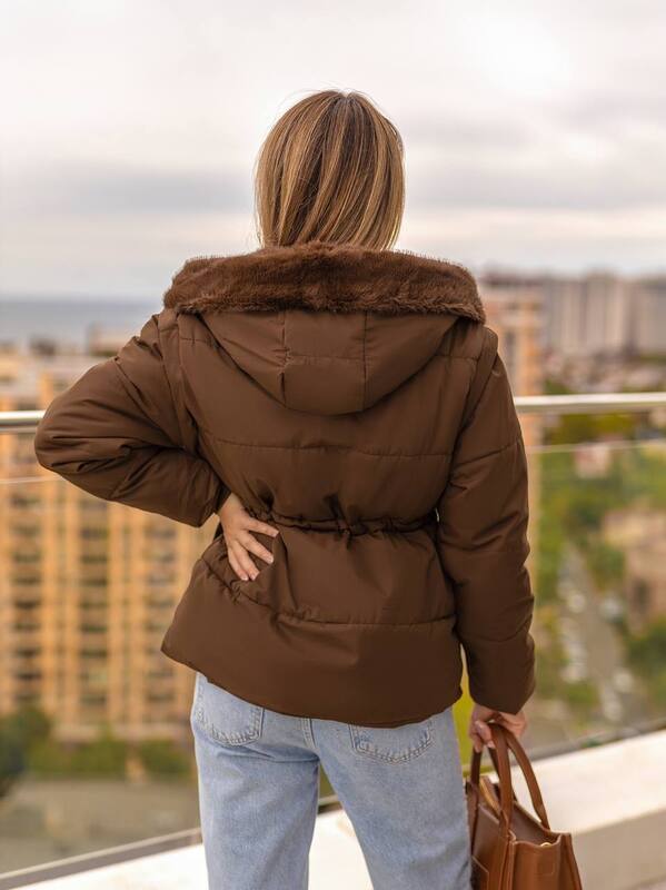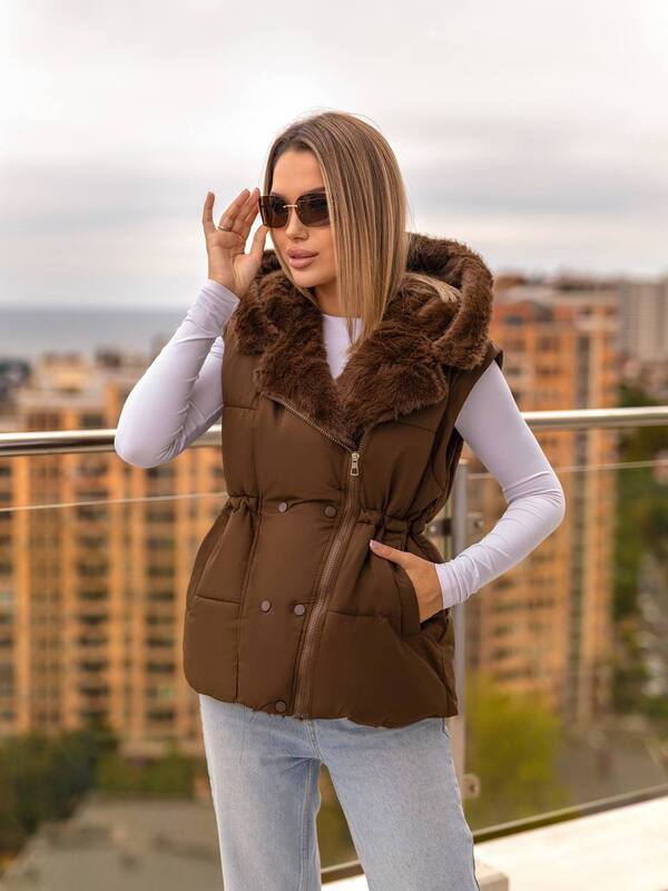 Куртка-трансформер із капюшоном,оздоблена штучним хутром «під норку».Завдяки знімним рукавам легко перетворюється на жилет,а куліска на талії та зручні кишені роблять модель практичною й стильною.