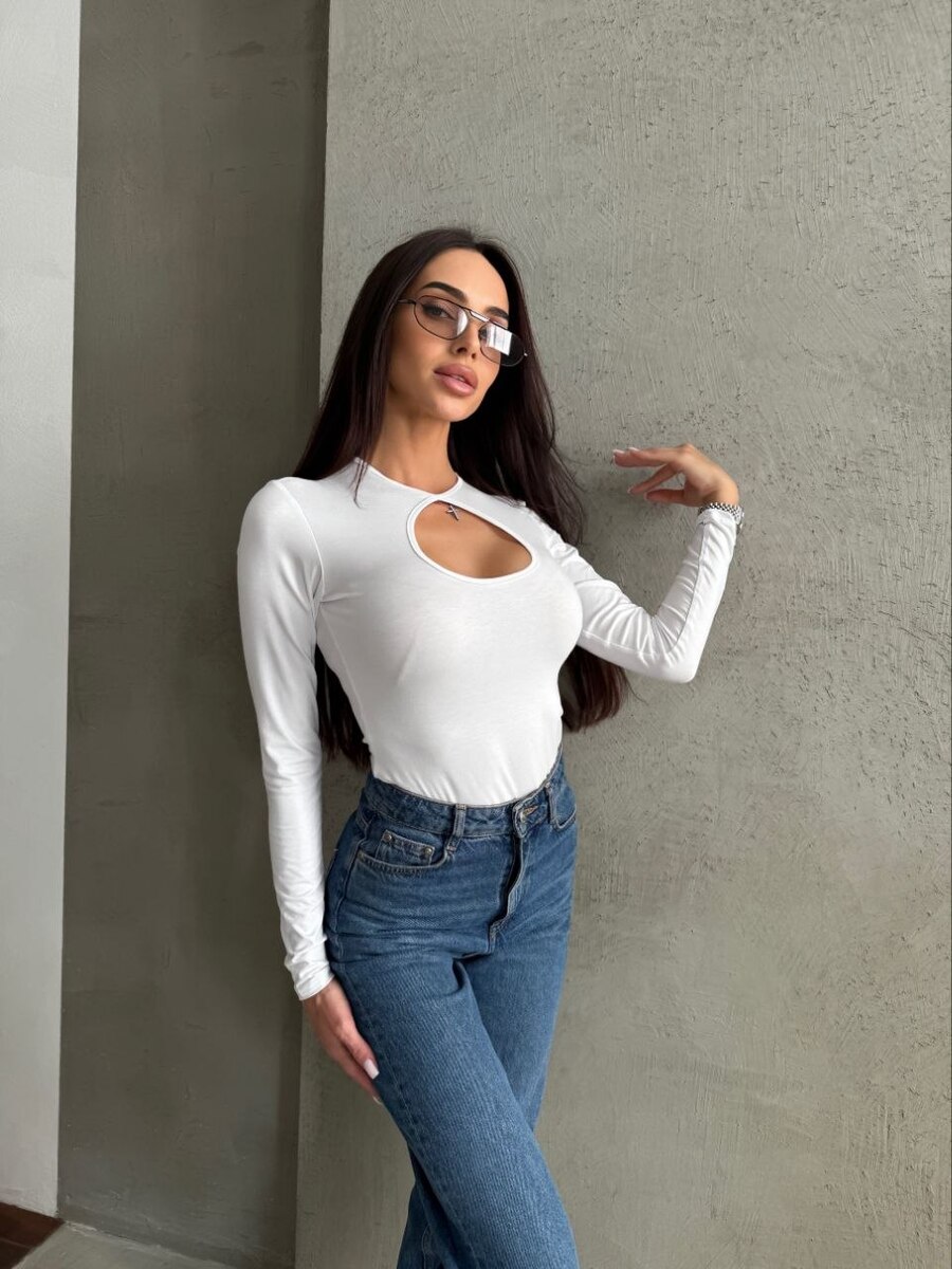 Лонгслів з вирізом у формі краплі, виконаний з м'якої віскози, який ідеально сідає по фігурі. Той випадок, коли одна деталь змінює все.