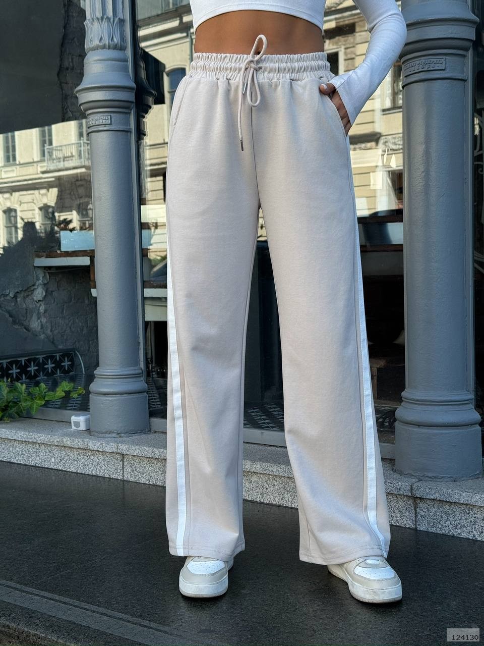 ✔️ Вільний фасон з лампасами по боках – візуально подовжує ноги та додає спортивної елегантності.