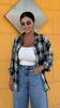 Універсальна сорочка оверсайз зі спущеним рукавом, по спинці – кокетка, застібається на кнопки. Рукав довгий на манжеті, підгорнутий на три чверті пасує краще.