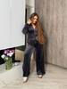 Кофта вільна,з капюшоном,на блискавці,з манжетами й декоративними елементами.Штани широкі,зручні,на резинці та зав’язках.
