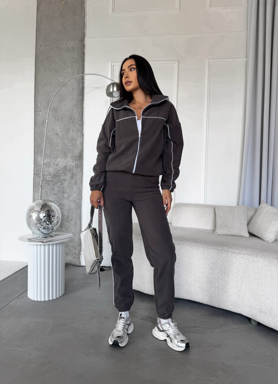 Кофта вільного крою, застібається на блискавку. Штани джогери, 2-і кишені. Кофта та штани оброблені кантом.