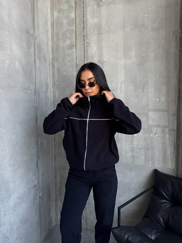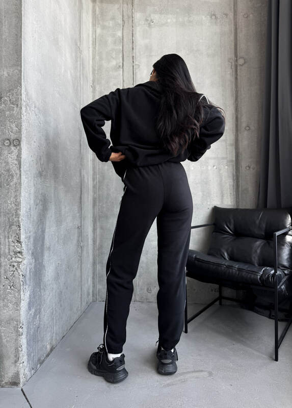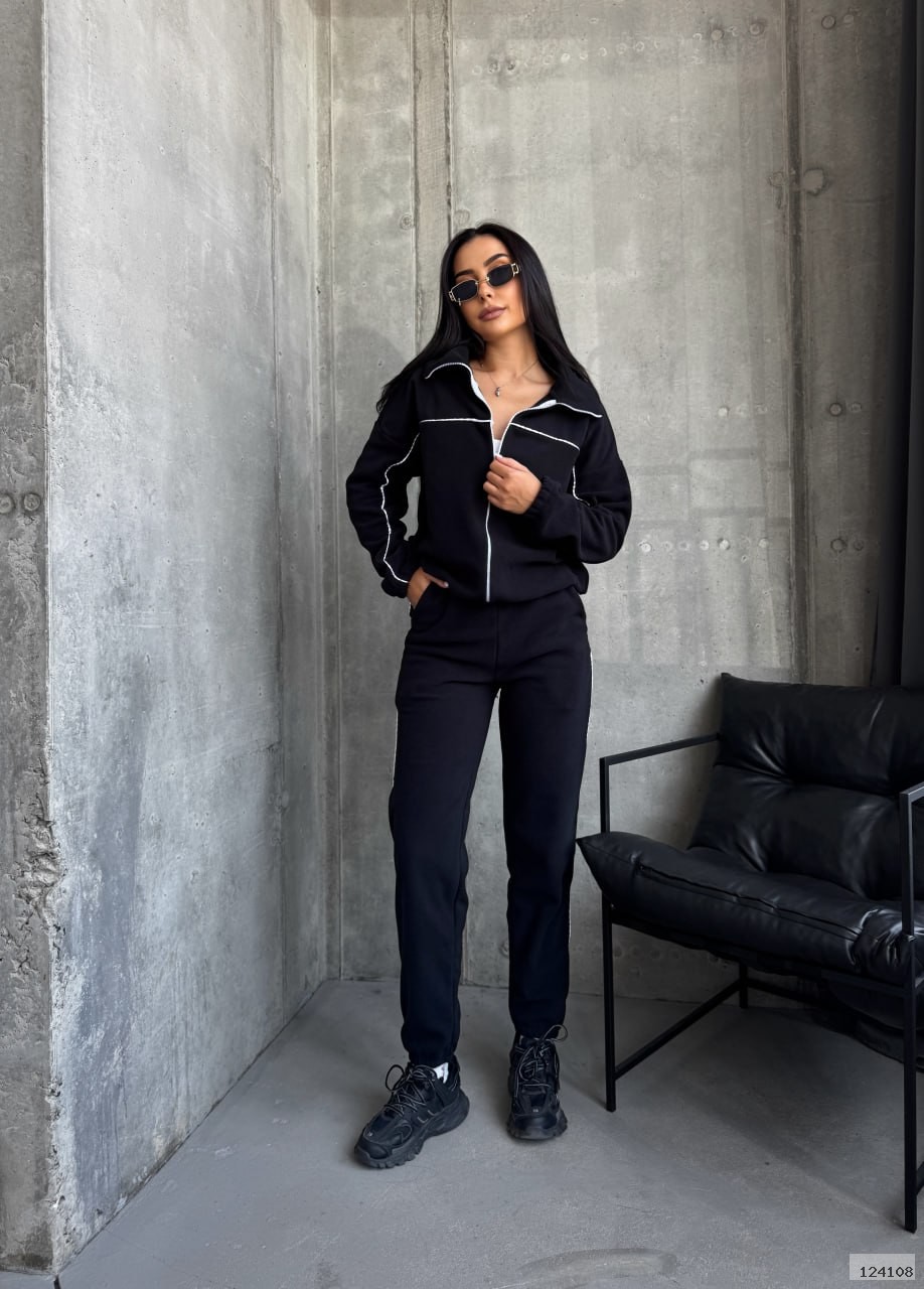 Кофта вільного крою, застібається на блискавку. Штани джогери, 2-і кишені. Кофта та штани оброблені кантом.