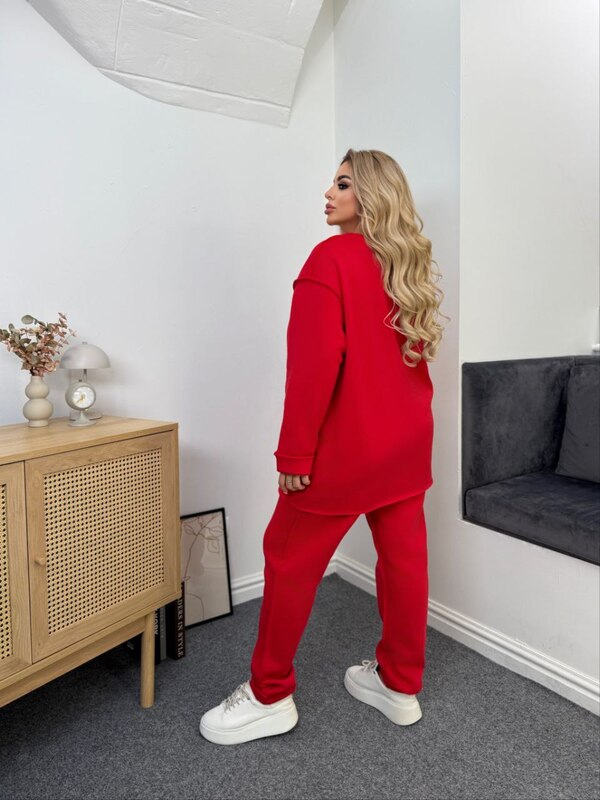 Осінньо-зимовий теплий спортивний костюм. Теплий світшот, без каптуру, з декоративними швами назовні. Штани з кишенями, на поясі гумка, знизу манжета.