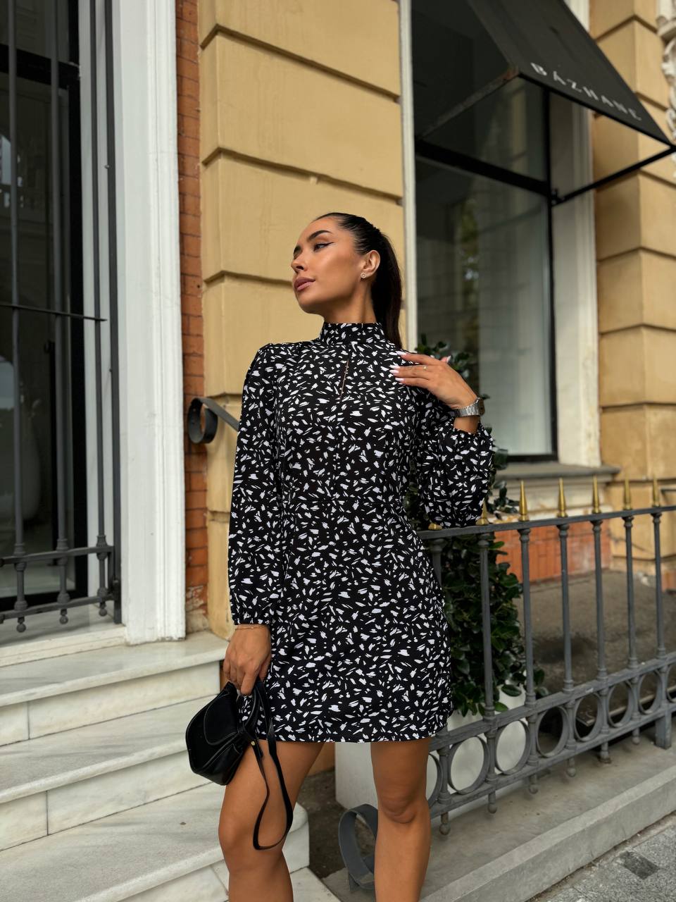 Стильна сукня міні. Розріз на грудях Рукава на резинці Ззаду потаємна змійка По бокам кишені