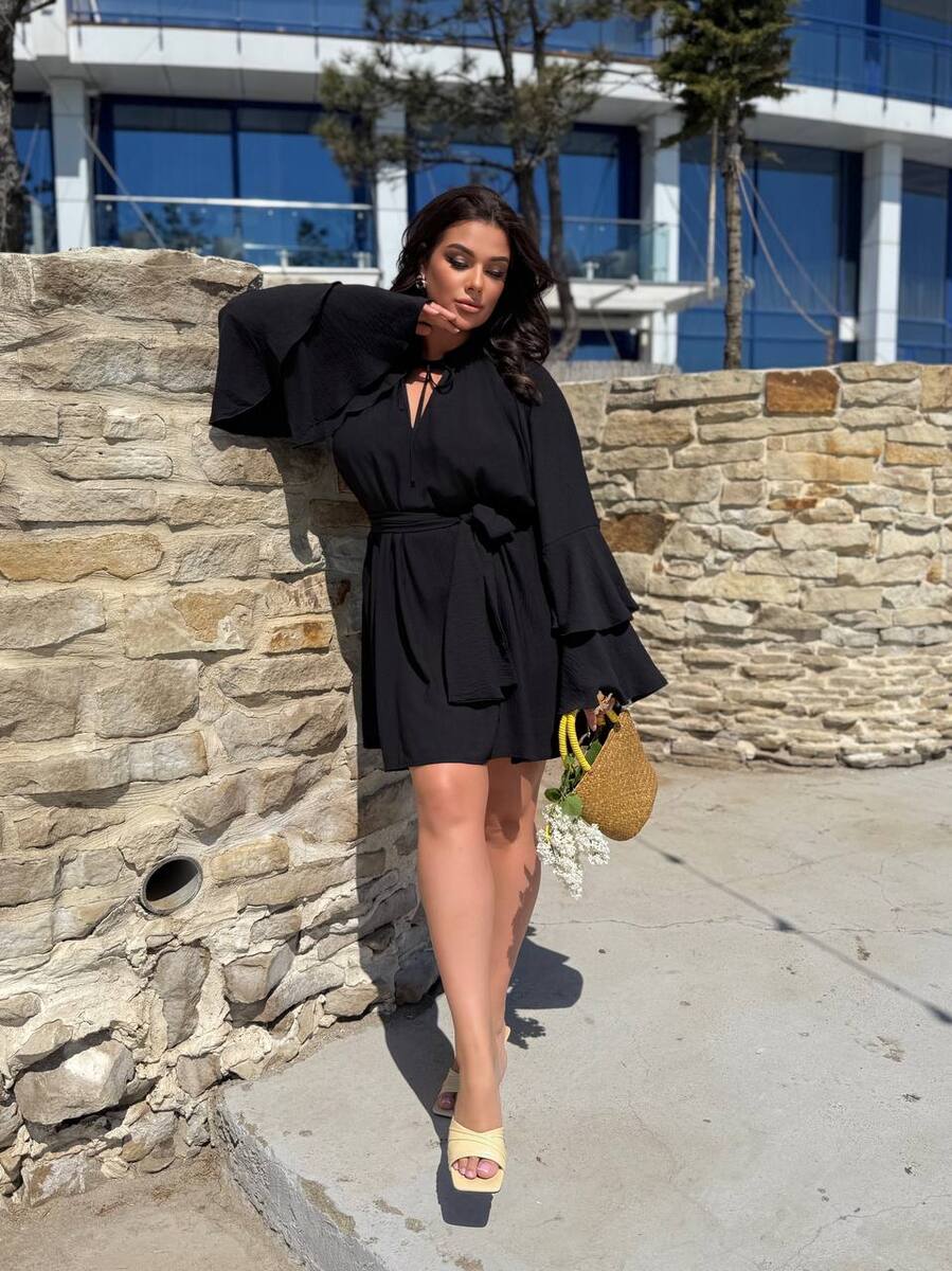 Легка сукня oversize з рукавами-воланами та поясом на талії