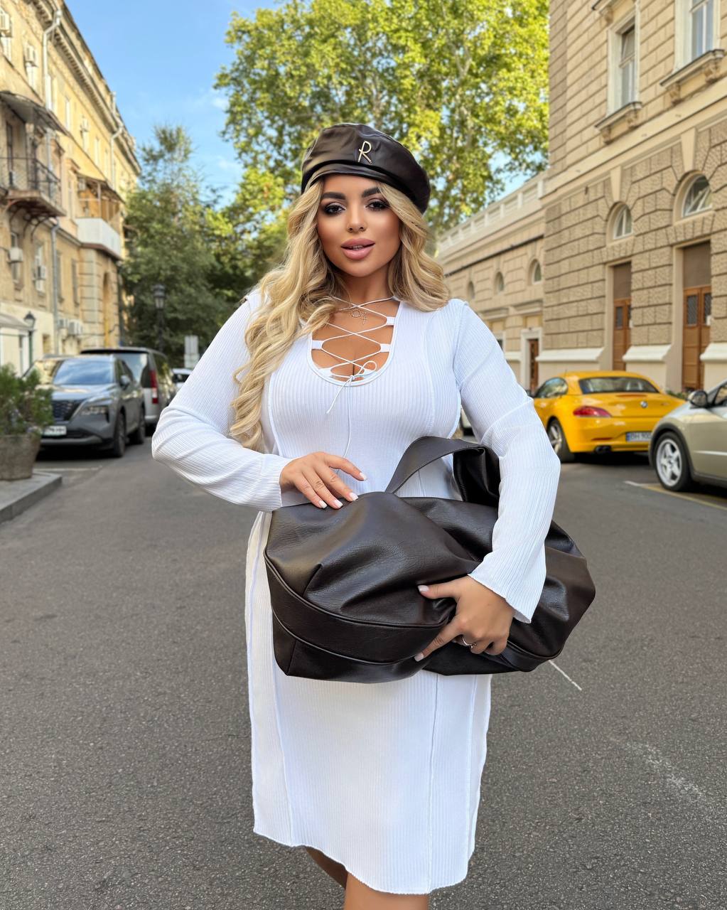 Сукня міні з V-подібним вирізом на завʼязках.
