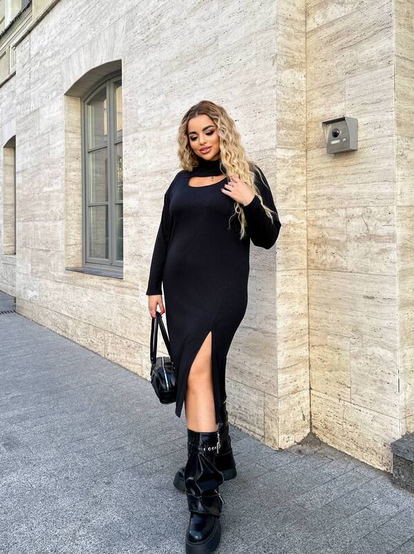 Сукня йде оверсайс, на грудях виріз який підкреслює чарівність ваших форм, розріз зліва довжина 35 см,плече приспущене