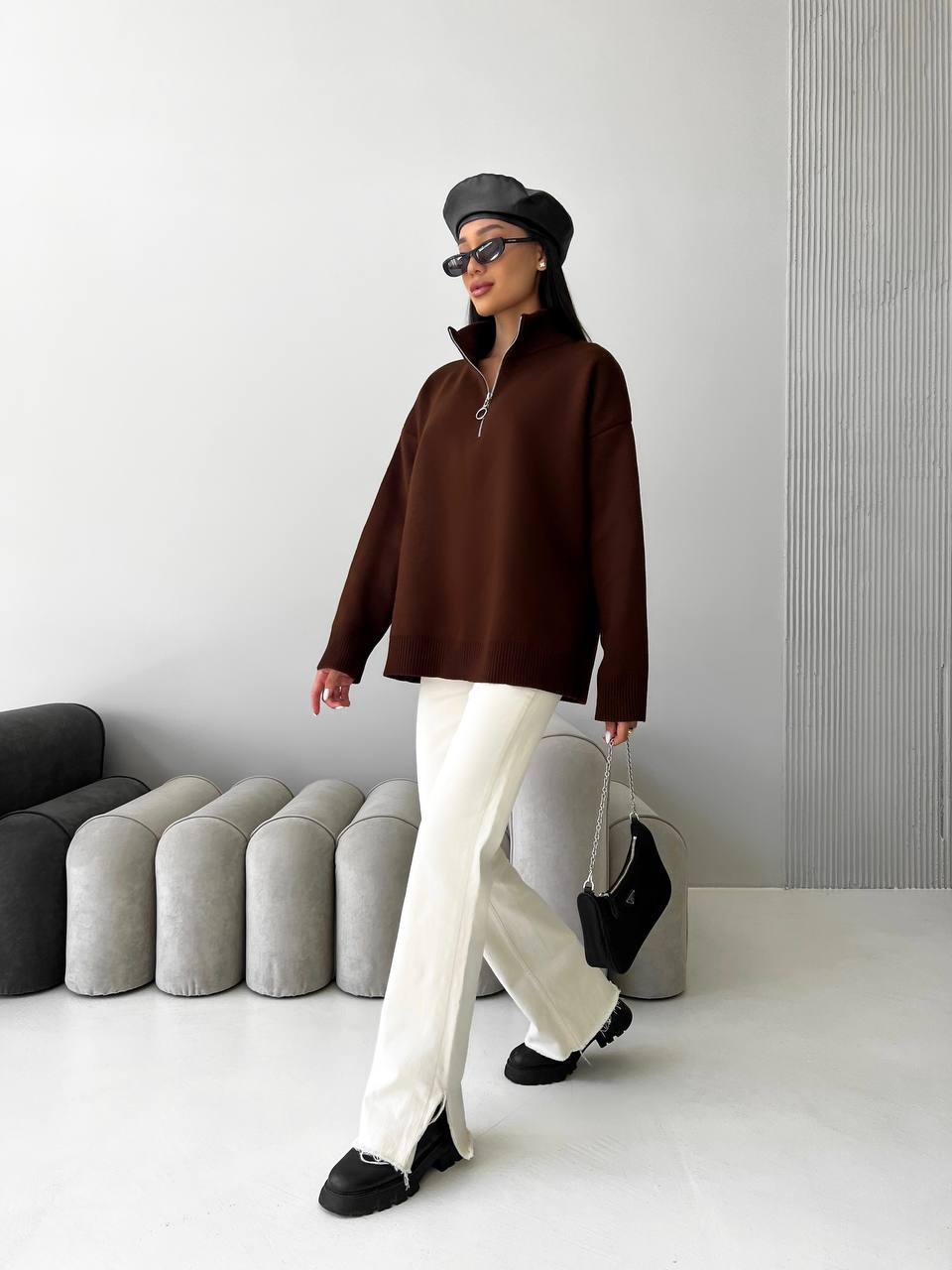 Светр із блискавкою із жакардової в'язки - це унікальне поєднання стилю та комфорту. Ця модель є ідеальним рішенням для тих, хто цінує високу якість і оригінальний дизайн.