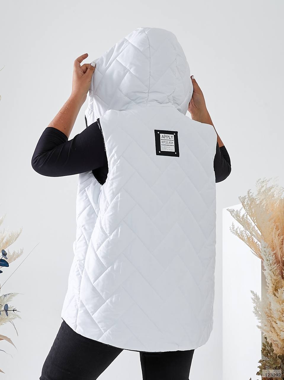 Стильна стьогана жилетка з кишенями, зручний глибокий капюшон, якісна фурнітура.